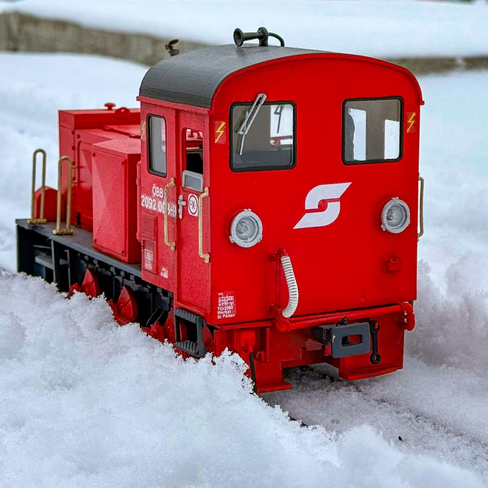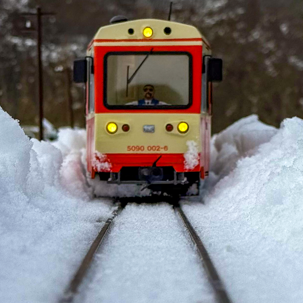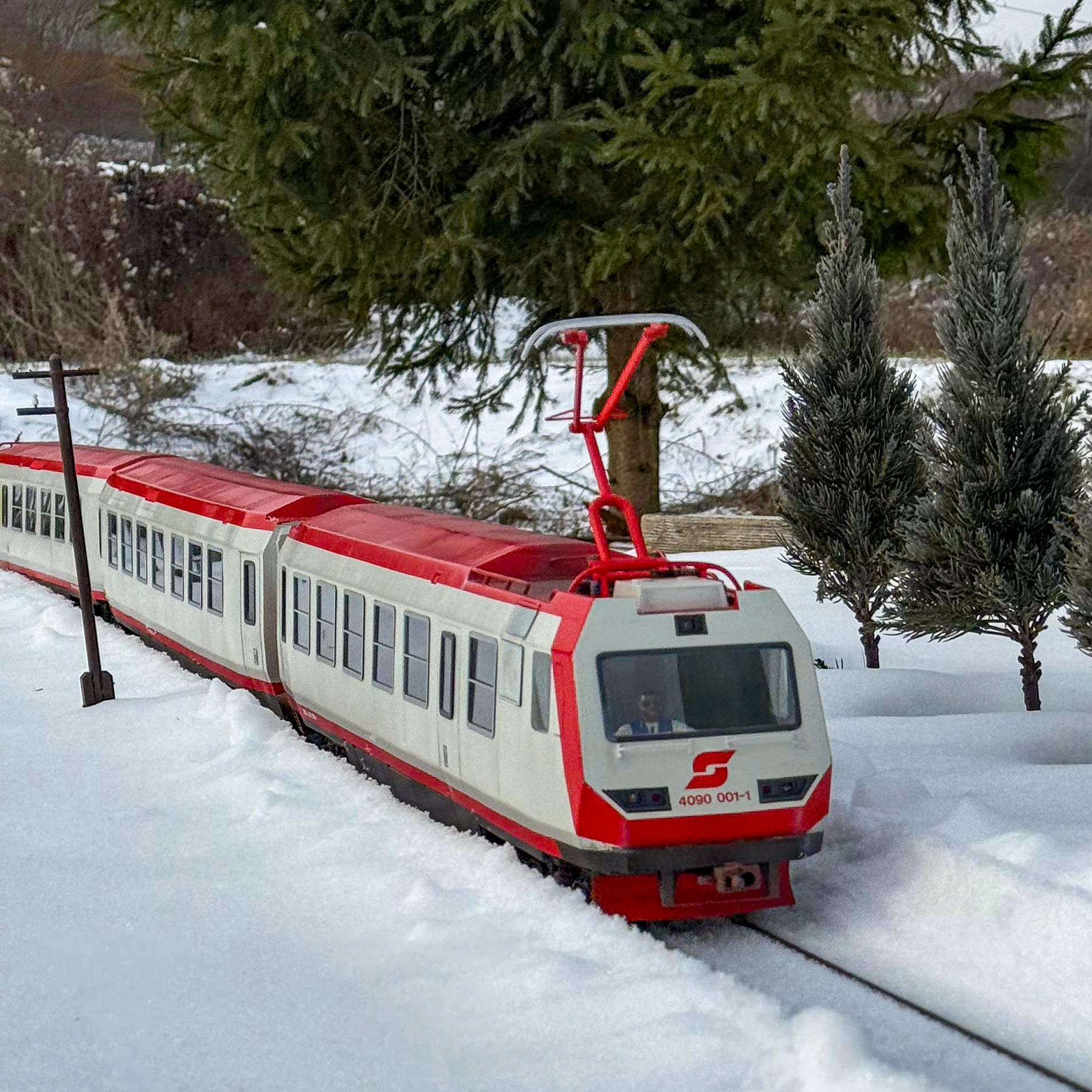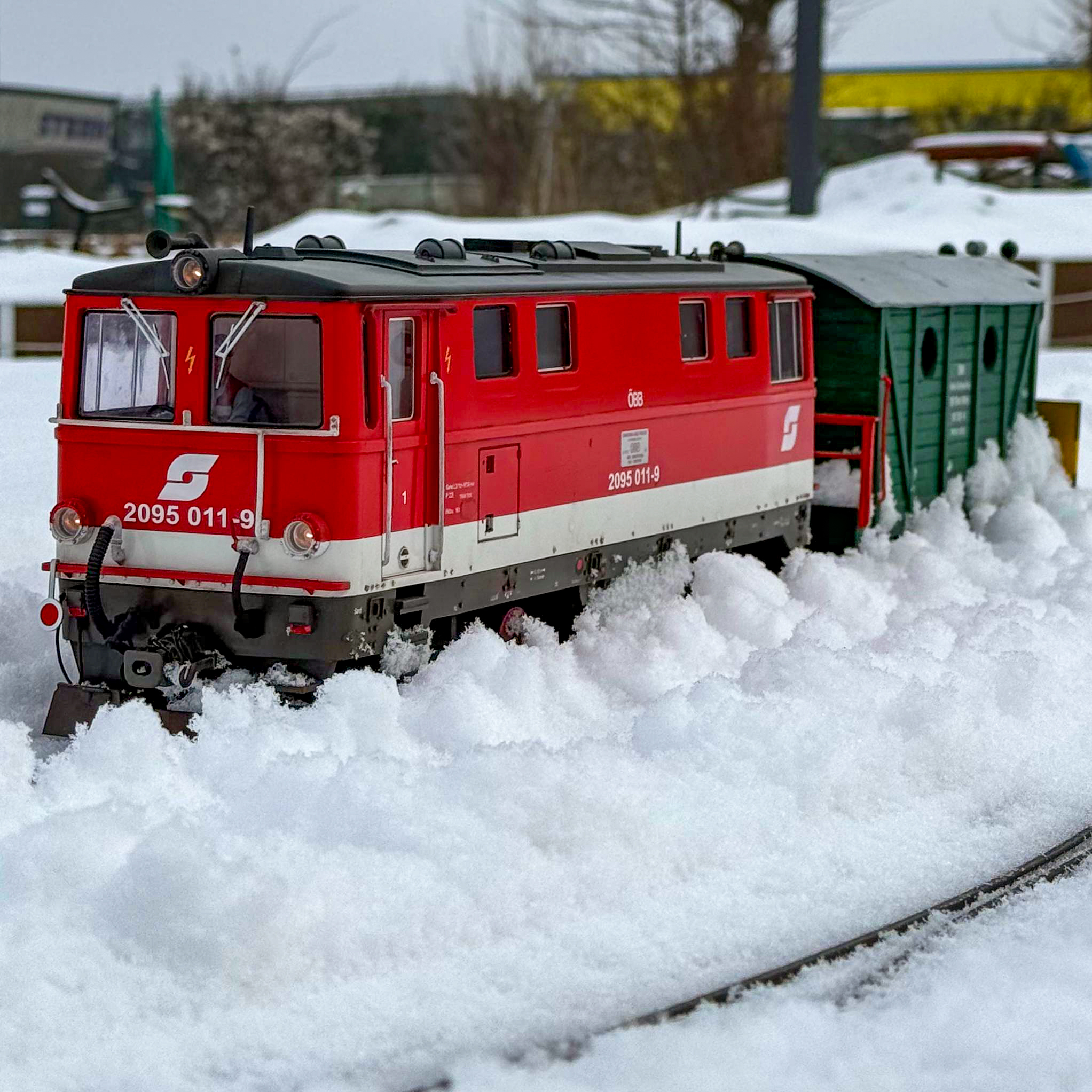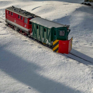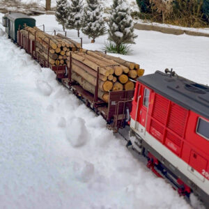 Auf unserer Eisenbahnanlage wurde per Schneepflug im Maßstab 1:22,5 fleissig Schnee geräumt und Personen- und Güterzüge drehten ihre Runden durch den winterlichen Scalepark.